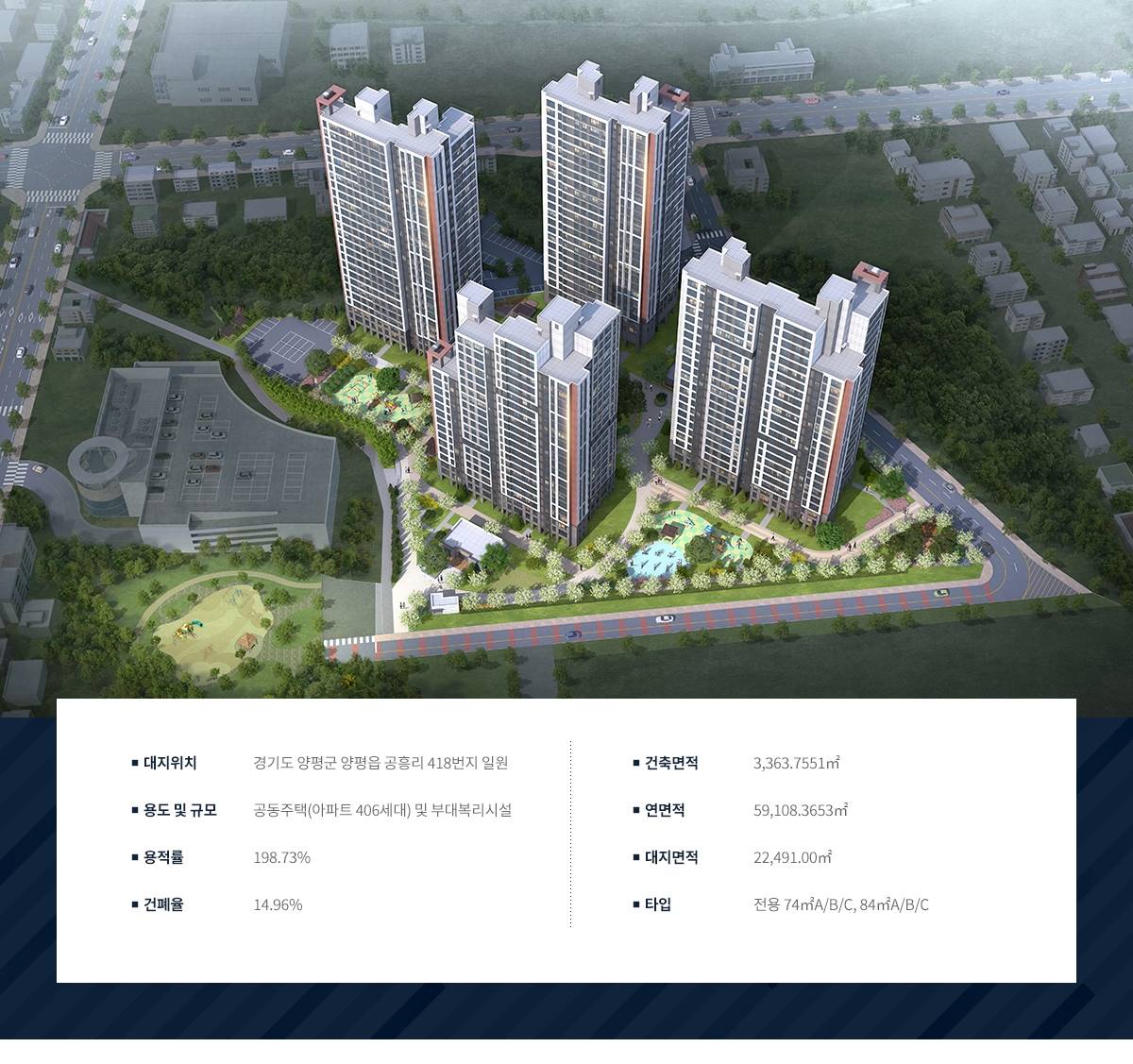 49㎡, 59㎡, 74㎡ 등 실속 있는 평형 위주로 구성되어 1~3인 가구에게 최적화된 공간을 제공합니다.